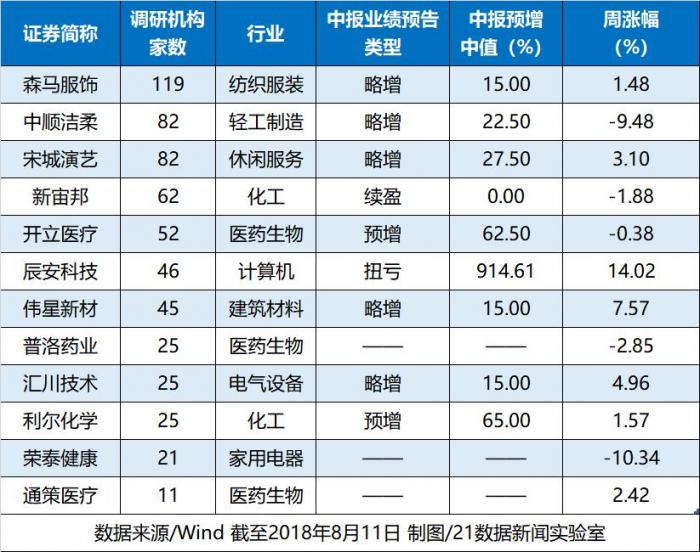据21数据新闻实验室统计,这一周(8月6日-8月11日),有30家上市公司获得调研,环比增加7家。