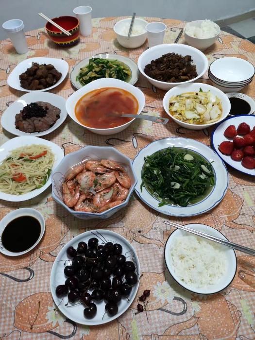 中交三航局的淮扬菜师傅做了丰盛午餐,红烧肉特别好吃。