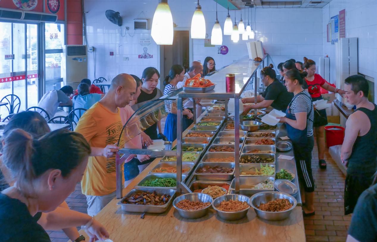 福建石狮,石狮服装城。中午守着店铺吃午餐的店家。