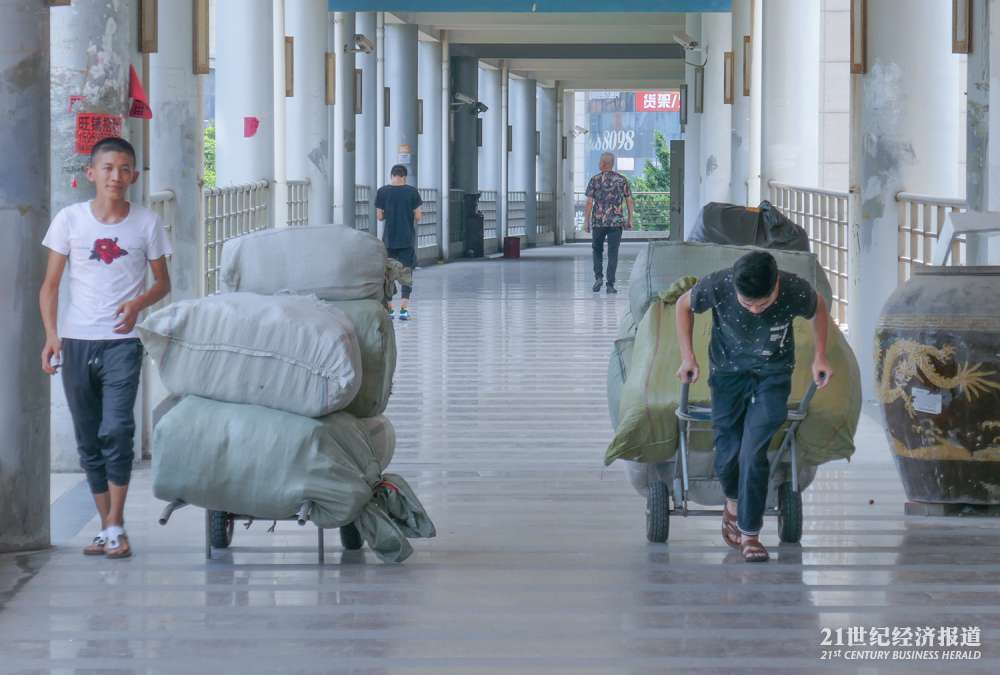 福建石狮,石狮服装城。忙着运送货物的商家。
