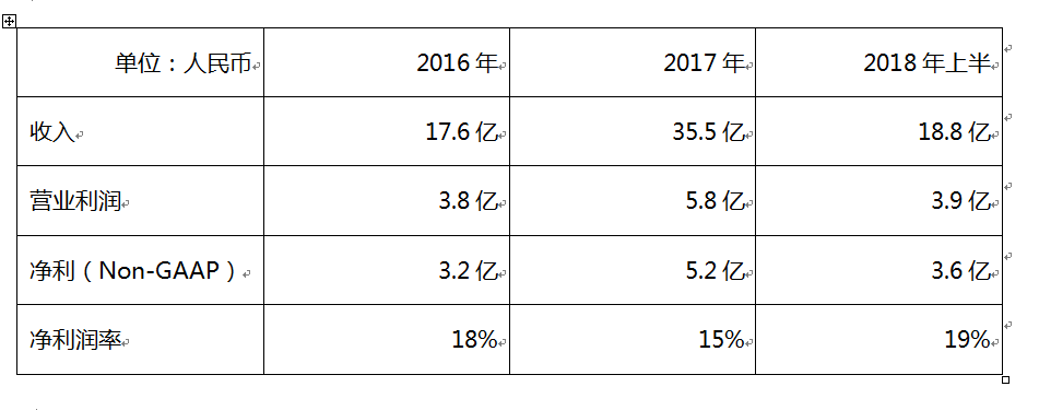 根据公开招股书中的行业分析报告,微贷在中国车贷行业处于龙头位置,市场份额35%。在2017年Non-GAAP净利(即非美国通用准则下,不含员工非现金股权激励费用)达到5.16亿人民币,2016年3.23亿增长60%;2018年上半年继续保持增长,non-gaap净利达3.63亿。