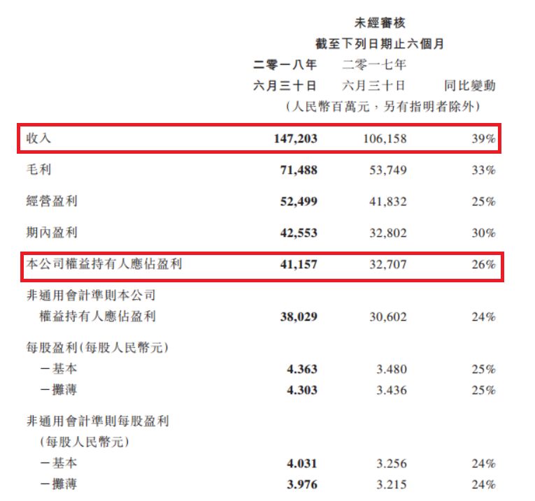 腾讯中报显示,其上半年实现营收1472.03亿元,同比增长39%;净利润411.57亿元,同比增长26%。