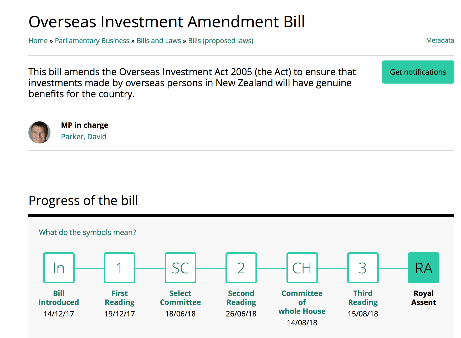 当地时间8月15日傍晚,新西兰国会以63比57票的投票结果通过了“禁止外国人购房法案”(Overseas Investment Amendment Bill)的三读阶段,这意味着这项备受争议的法案即将正式成为法律,新西兰国会网站显示,该法案只差最后一步即新西兰总督批准(Royal Assent)。