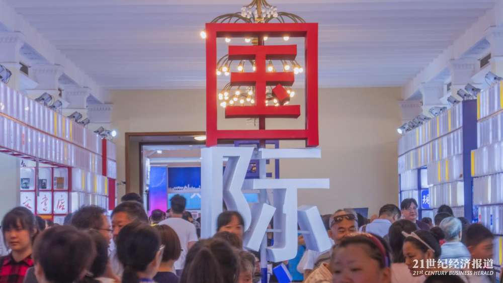 上海展览中心主会场展馆熙熙囊囊的人流。