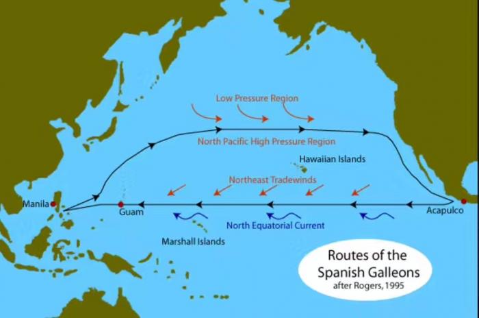 从马尼拉到墨西哥阿卡普尔科港的航线图。