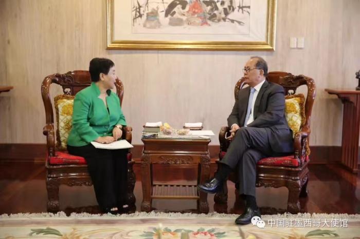 今天到中国驻墨西哥使馆大使官邸采访邱小琪大使。使馆与大使官邸两扇中国红的大门十分抢眼。我最关心8月2日邱大使与当选总统洛佩斯会见时,洛佩斯对中墨关系未来走向的见解与框架蓝图。邱大使介绍说,洛佩斯高度重视发展中墨关系,将推进中墨间各领域深入合作,愿同中方一道,增进互信、深化合作,促进共同发展。
