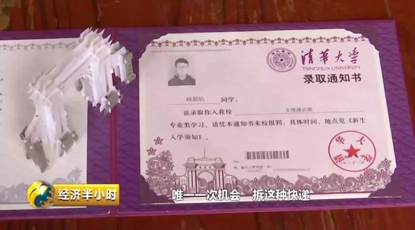 △杨新航的清华大学录取通知书