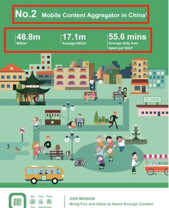 此外,趣头条表示自己是中国排名第二的移动内容聚合商,仅次于今日头条。