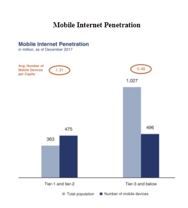 招股书中,趣头条表示自己的战略目标是中国三线以下城市的用户群体,因为这个服务不足的市场蕴含着巨大的机遇。根据易观国际的报告,截至2017年底,三线及以下城市的人口为10.27亿人口,平均每人拥有0.5部移动设备(相比之下,一二线城市人口为3.63亿,平均每人拥有1.3部移动设备)。