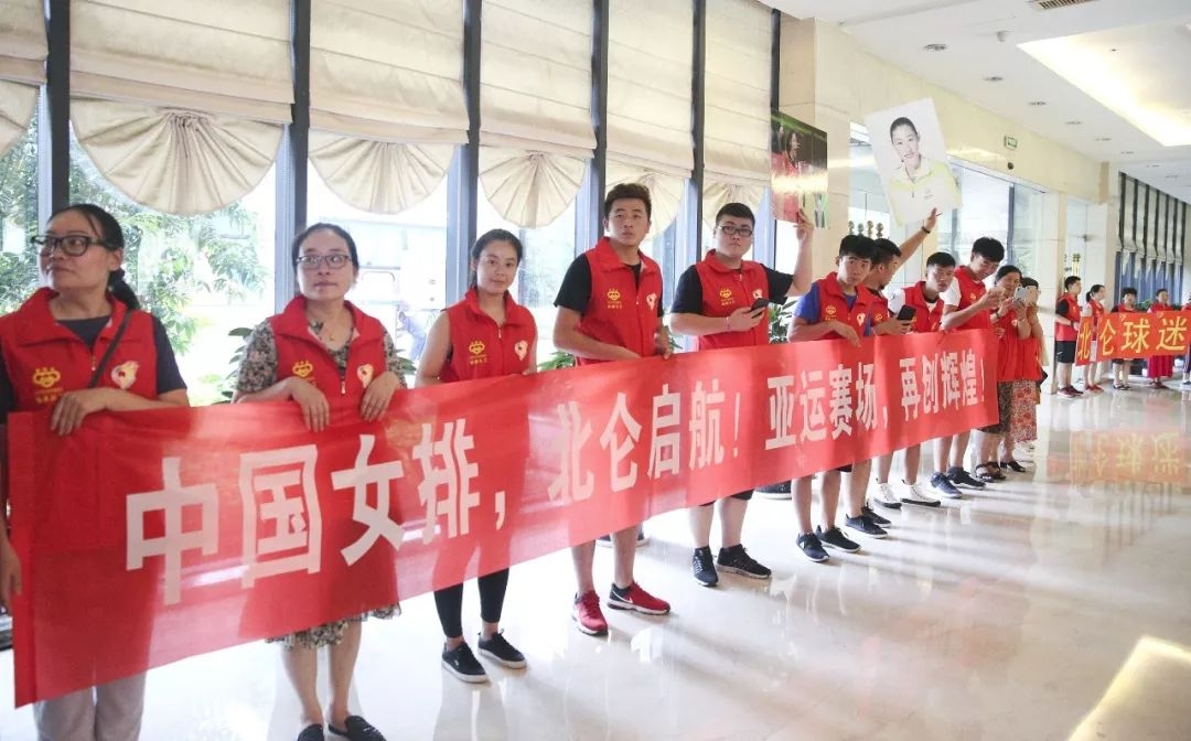 △8月11日,浙江宁波,中国女排集训结束,球迷标语助威送别。