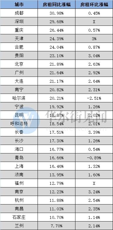 不止是北京,其他一二线房租涨得更凶猛:成都同比增长31% 深圳29%