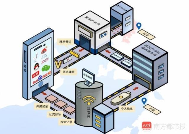 警方查明,北京一个以新媒体营销为主业的上市公司,与覆盖十余省市的运营商签订营销广告系统服务合同,钻运营商监管不力的空子,在运营商服务器中布置恶意采集信息程序,从运营商流量池中非法获取用户数据,为逃避监管追查,还将部分数据存储于日本的服务器上。
