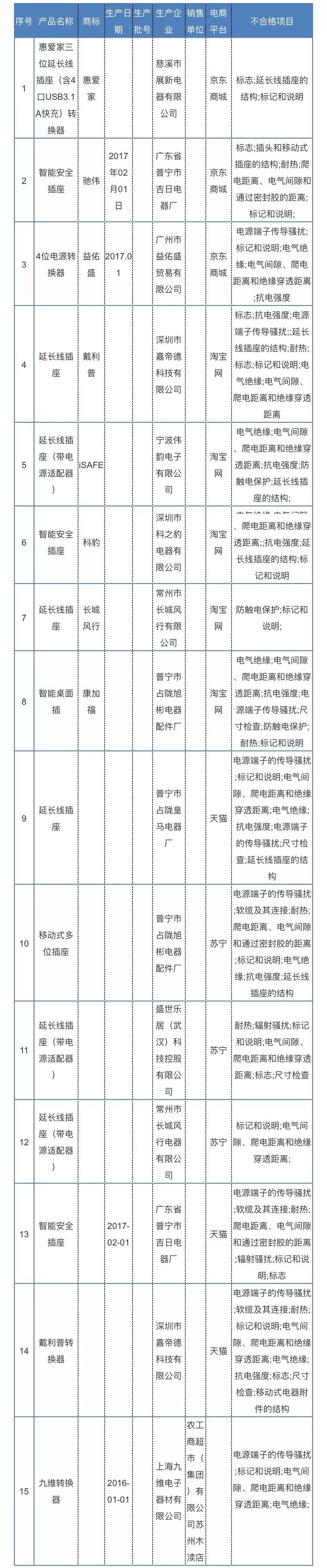 该通报称,2018年第二季度,该局抽查了48批次USB接口插座产品,合格33批次,合格率为68.8%。抽查不合格的商标涉及:惠爱家、驰伟、益佑盛、戴利普、iSAFE、科豹、长城风行、康加福等。
