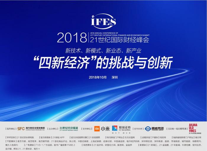 也正是在此背景下,2018年10月,由南方财经全媒体集团指导,《21世纪经济报道》主办的“21世纪国际财经峰会2018年会”(下称“国际财经峰会”)将在深圳举行,与国内外监管机构负责人、知名的金融机构舵手、宏观经济学家、风投资本大师、行业龙头上市公司董事长等各行业领袖,共同探讨“四新经济”的挑战与创新。