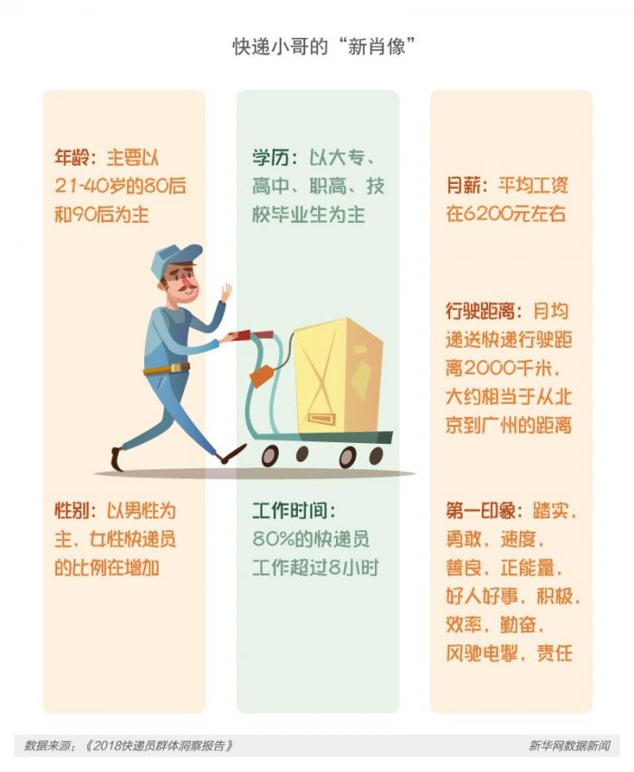 快递员对国民经济的助推作用不可忽视。国家邮政局的数据显示,2018一季度快递支撑网络零售额接近1.5万亿元人民币,快递业务收入占国内生产总值比重为6.2‰,对国内生产总值增长直接贡献率为1%。