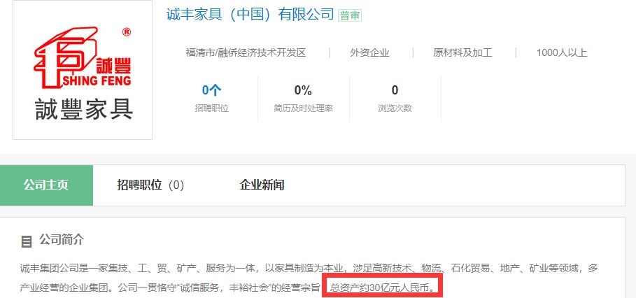 在办公家具行业,这家成立于上世纪90年代初的公司,地位不容小觑。作为中国最大的家具生产基地之一,诚丰家具也是办公家具行业最大的供应商之一,其最新介绍显示,公司总资产约30亿元。
