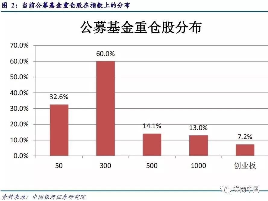 银河证券统计数据显示,公募基金重仓股在中证800+中证1000上的配置比例达到87.1%。其中在上证50、沪深300、中证500、中证1000、创业板综五个指数上的配置比率分别是32.6%、60.0%、14.1%、13.0%、7.2%。