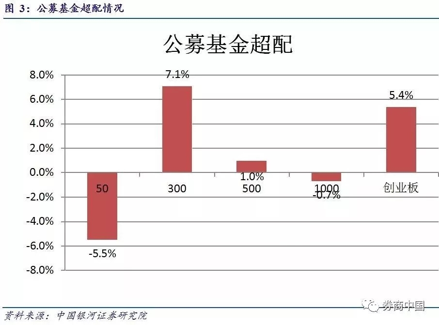 值得注意的是,机构资金的选股风格已与去年不同。创业板获得公募基金超配,而去年表现抢眼的上证50却遭到基金减配。