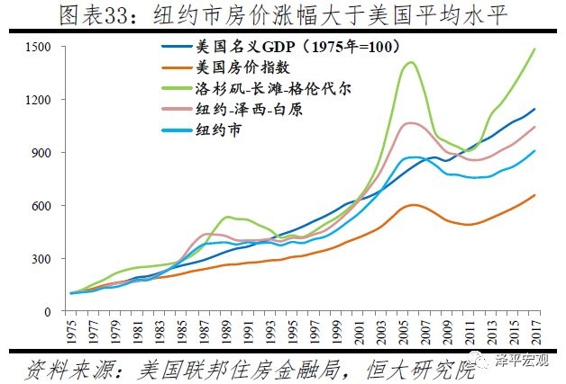 一国内部哪个区域房价涨幅最大:人口流入的大都市圈。1)由于人口向大城市及大都市圈集聚,首位城市房价涨幅显著超过全国平均水平。英国伦敦最近50年房价涨幅达106倍,远超英国整体的61倍;法国巴黎市1965-2015年房价上涨32.5倍,明显超过法国整体的22.7倍;美国纽约市1975-2017年房价上涨8.1倍,高于美国整体的5.6倍。日本地价在泡沫破灭前36年上涨82倍,六个核心城市地级涨幅更是高达210倍。2)在大都市圈内部,核心区域房价涨幅显著高于其他地区。在英国,1995年1月至2018年3月,内伦敦房价上涨6.4倍,大于外伦敦的4.8倍。在法国,1997年4季度至2017年3季度,巴黎市房价涨幅达2.95倍,明显超过近郊三省的1.97倍、远郊四省的1.43倍。在美国,1987-2017年,纽约市曼哈顿区、皇后区房价分别上涨2.14、2.22倍,超过纽约市和纽约分区的1.41、1.43倍。在日本,在房价见顶前五年,东京都区部房价上涨2倍,高于东京都的1.8倍和东京圈1.2倍。3)人口流入幅度大的地区,房价涨幅可能更大。当前纽约地区虽仍为美国第一大都会区,但过去近60年人口增幅明显不及洛杉矶地区,因而房价涨幅相对较低。1975-2017年,纽约分区房价上涨9.5倍,明显低于洛杉矶分区的13.9倍。日本东京都因人口持续流入,在地产泡沫破灭后于2006年率先反弹,2006-2016年累计上涨11.7%,居日本之首。