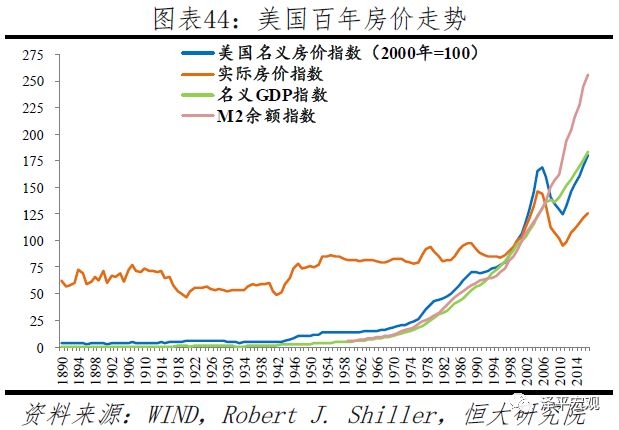 2)房地产具有抗通胀属性,能部分分享经济增长红利;长期来看,全球货币超发是普遍现象,广义货币增速多高于名义GDP增长,能够跑赢印钞机的资产不多,在多数国家大都市圈的房地产是其中之一。我们在《货币超发与资产价格:中国》研究发现,过去四十年,中国广义货币供应量M2年均增速15%,1998-2017年M2增长16倍,从各类资产价格表现看,绝大部分的工业品、大宗商品、债券、银行理财等收益率都大幅跑输,只有少数一二线地价房价、医疗教育等服务类产品、股票市场上的核心资产等收益率跑赢这台印钞机。