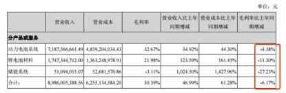 除了宁德时代之外,已经披露中报的多家动力电池企业毛利率也一并走低,如杉杉股份上半年销售毛利率下降2.98%,其正极材料净利润增幅远低于营业收入增幅,负极材料净利润则下滑4.99%。