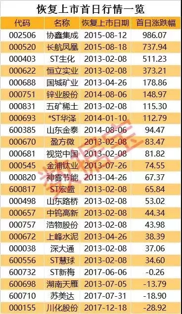 此外,虽然恢复上市首日不设涨跌幅限制,但恢复上市公司的筹码构成和新股上市首日可流通筹码构成大不相同,因此投资者要注意了,千万不能把恢复上市公司当成新股来炒。