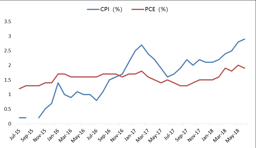 美国商务部昨日公布的报告显示,通胀率基本保持在美联储同比2%的水平浮动。PCE(个人消费支出)6月同比增长2.2%,5月增速为0.1%。除去波动性较大的食品与能源支出,5、6月同比增速分别为0.1%和1.9%。