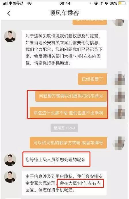 据了解,受害人亲友接到受害人的求救信息后在曾在第一时间联系滴滴客服上报此事,而滴滴客服的回复却一再拖延:等上级人员处理,涉及隐私,要等安全专家来处理等等。