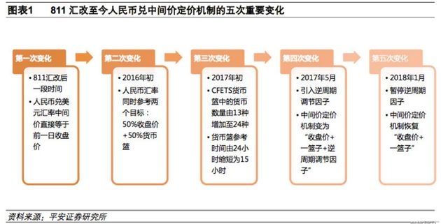 平安证券指出,2015年811汇改以来,人民币兑美元中间价形成机制经历了五次重大变化。