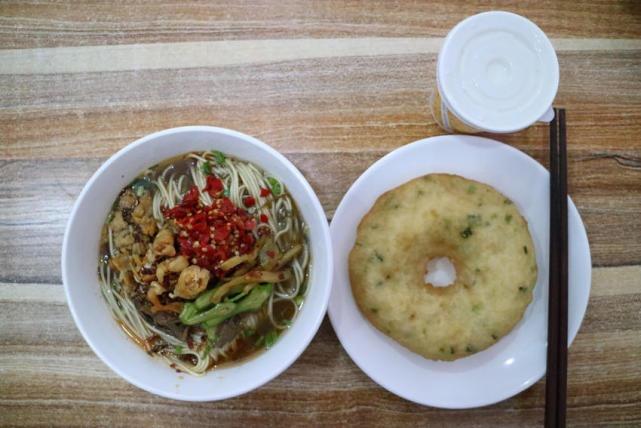 长沙市民的早餐:酸辣面6元+葱油饼2元+豆浆2元。