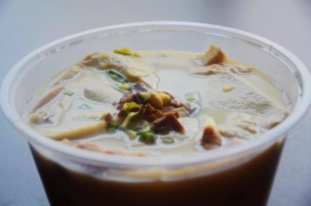 陕西的豆花泡馍8元一碗,是地方传统风味的名小吃,其馍采用独特工艺加调味料烙成,俗称“锅盔”,豆花用品质上乘的黄豆土法做成,鲜嫩爽滑,煮而不散。
