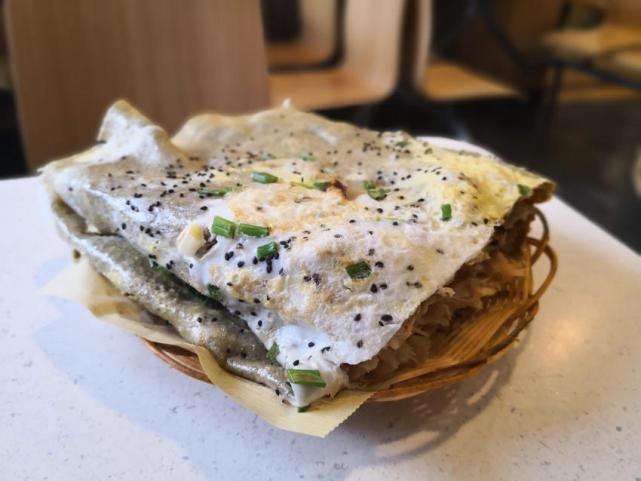 煎饼馃子,单价7元,是天津著名的小吃,天津人把其作为早点。煎饼馃子由绿豆面薄饼,鸡蛋,还有馃子(油条)或者薄脆的“馃篦(bì)儿”组成,配以面酱、腐乳、葱末、辣椒酱作为佐料。