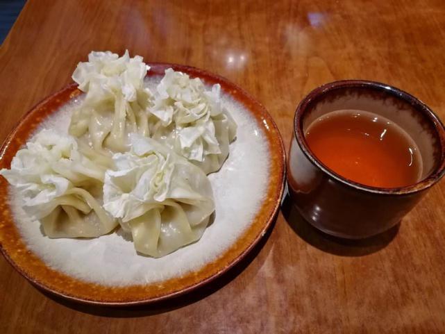 内蒙古呼和浩特市的特色早餐——烧麦,图为4个烧麦(10元半两)+免费砖茶的组合。