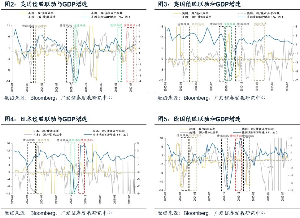 投资人的投资行为更多来自于对未来预期的变化甚于当前的实际情况,因此在经济复苏的初期,对于未来经济上升趋势的确定性不强,仍可能产生债涨股跌的情况,但在经济复苏的中期,向上预期一致性强烈,在存量市场中(即未有大规模资金流入)的情况下,则转换为债跌股涨。该情况在美国、英国、日本、德国等数据中均得到了一定的验证。