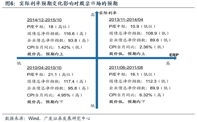 此外,股票的上涨和下跌与未来预期的相关性强于当前所处的绝对位置,在经济预期产生变化时,利率水平和通胀预期也会产生实际利率的预期变化,可作为未来变动方向的参考。