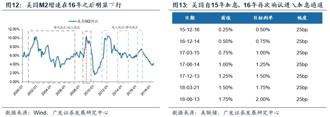 自2008年11月以来美国经历了多轮QE,流动性相当充裕。但2015年进入加息通道,全年加息一次,2016年年末再次加息增强了进入加息通道的确定性,流动性收紧、利率进入上行通道的一致预期强烈。因此自2016年以来,美国债股大类资产的表现上,替代效应强于收入效应。
