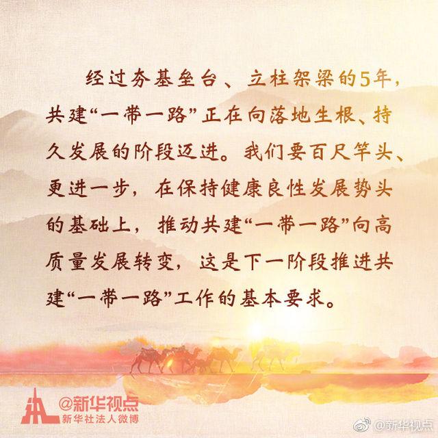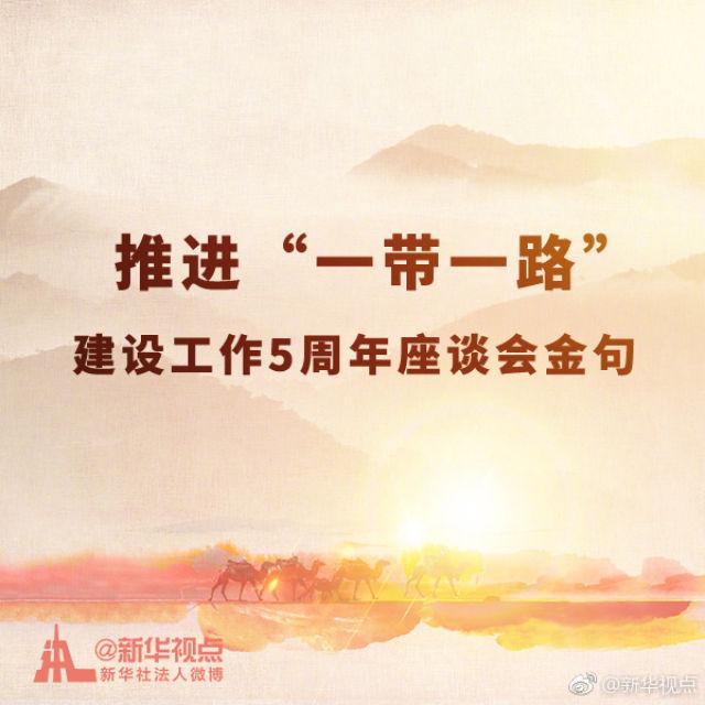 【推进“一带一路”建设工作5周年座谈会金句】经过夯基垒台、立柱架梁的5年,共建“一带一路”正在向落地生根、持久发展的阶段迈进。27日,中共中央总书记、国家主席、中央军委主席习近平在北京人民大会堂出席推进“一带一路”建设工作5周年座谈会并发表重要讲话。来看看这些金句。
