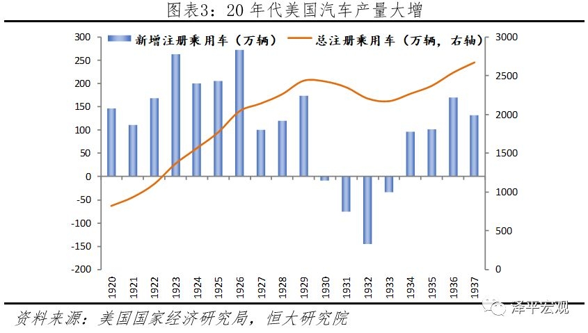 产业结构迭代更新,制造业兴起,农业衰退。20世纪20年代,伴随战后经济重建,以汽车、电气、建筑为首的制造业快速兴起,美国经济进入高速发展期,史称“柯立芝繁荣”。1921-1929年美国GDP、GNP年均增速分别达到3.8%、5.5%,同期工业生产指数上涨幅度达74.8%。然而,在一战期间快速扩张的农业,由于战后各国经济重建以及前期过度扩张而导致主要谷物价格跌入谷底、出口大幅萎缩,农业进入漫长的萧条期,为后续宏观政策的转变埋下伏笔。
