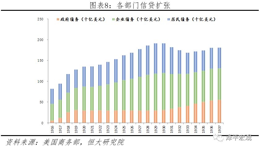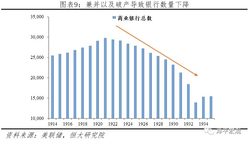 信贷扩张,银行兼并热潮兴起,金融脆弱性提升。监管的逐步放松,一方面并未对农业起到显著的改善效果,而另一方面极大刺激了不动产贷款以及消费信贷,使得信用膨胀严重,各部门杠杆率急剧上升。此外,产业结构变化导致金融市场格局发生巨大改变:南部各州以及中西部的农业地带中小银行由于农场主无力偿还贷款,不良资产大幅上升,而西部和东北中部等工业地区得益于大规模工业体系的繁荣使得金融机构快速发展,纷纷趁机收购、合并大量中小银行,叠加股市繁荣促使优质公司转向股票、债券等直接融资方式,银行业整体资产质量逐步下降,金融脆弱性提升。