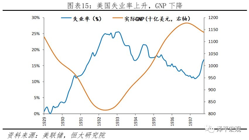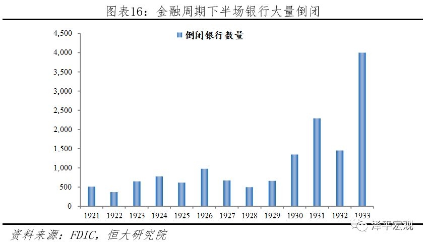 大萧条金融周期在经历了上世纪20年代经济迅猛发展、监管逐步放松、信贷快速扩张的金融上半场后,货币政策骤然紧缩使得金融周期进入下半场,而后续宏观政策的失误以及贸易保护主义抬头导致美国乃至世界经济均持续陷入萧条。
