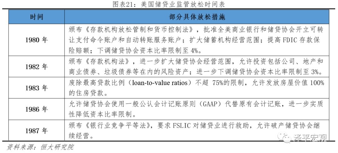 监管全方位放松叠加存款保险制度托底,储贷协会野蛮扩张,金融风险快速积聚。为解决20世纪80年代初大批储贷协会因存款利率上限管制而陷入危机的问题,自1980年起,美国政府陆续颁布了包括《吸收存款机构法》、《存款机构放松管制和货币控制法》在内的多项法规,从利率管制、资本限制、经营范围、会计记账等全方位对存款性金融机构放松监管。此举一方面导致商业银行及储贷协会为吸收存款大幅提升存款利率,使得存款利率不断逼近原有长期固定贷款利率,甚至出现利率倒挂;另一方面,为获取更高利润,大量中小储贷协会放贷于风险更高的商业地产投机并过度扩张高风险、高收益的垃圾债券、金融期货等资产业务,金融风险快速积聚。