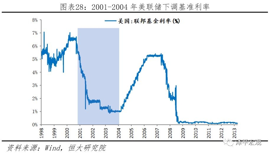 次贷危机金融周期在2001-2003年经历了美国宽松货币、金融自由化、金融工具创新以及影子银行快速兴起的金融周期上半场后,房产泡沫堆积、信贷迅猛扩张,而2004-2006年紧缩的货币政策最终刺破房产泡沫,金融周期进入下半场,酿成国际金融危机,引发世界经济萧条。