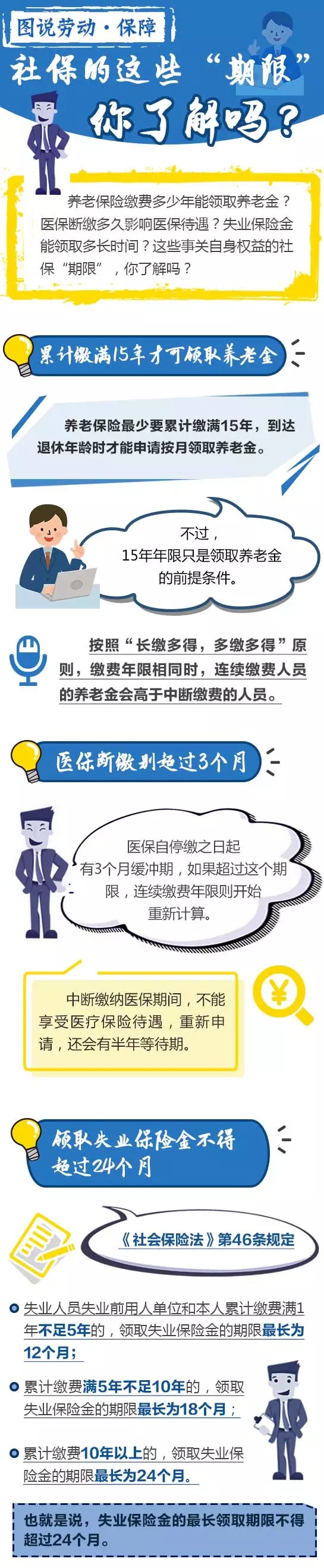养老保险缴费多少年能领取养老金?医保断缴多久影响医保待遇?失业保险金能领取多长时间?这些事关自身权益的社保“期限”,你了解吗?
