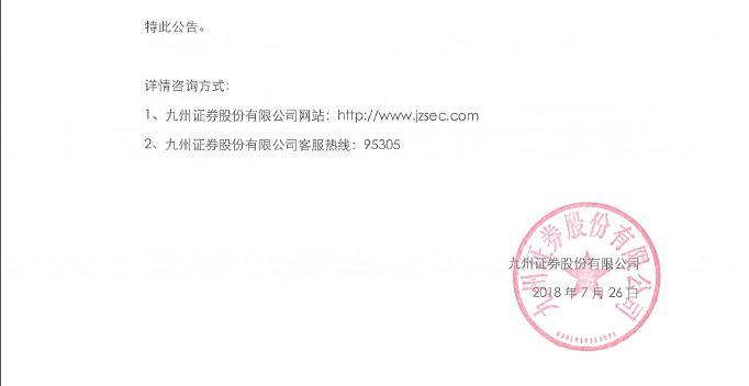 据九州证券7月26日公告显示,九州证券将分6批偿还本金。