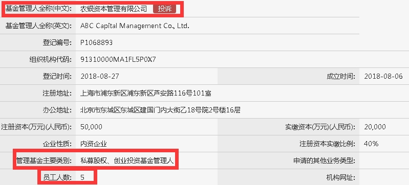 根据中国证券投资基金业协会网站消息,农银资本管理有限公司于8月27日在中国证券投资基金业协会完成私募基金管理人登记。管理基金主要类别为私募股权、创业投资基金管理人。
