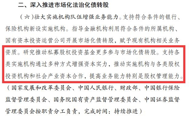 这意味着,更多金融机构有望通过发起、参与私募股权基金的方式开展债转股。