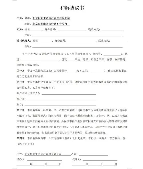 后来媒体、工商部门介入,自如同意退还全额租金,但要求签订一份带有“封口性质”的和解协议。