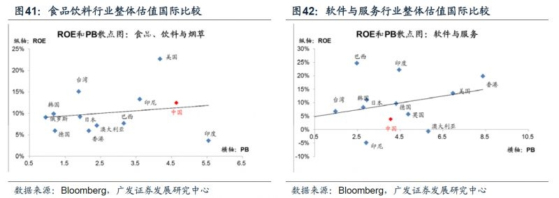 净资产收益率(ROE)与净资产估值(PB)是一组匹配的估值-业绩比较方法。估值是市场依据盈利能力(的预期)对标的资产进行定价的结果,由于各个国家同一行业的盈利能力是有差异的,与这种盈利能力相对应的估值也就会有差异,因此,盈利能力与估值是一种动态的平衡,两者之间应该存在一种相对稳定的线性关系。