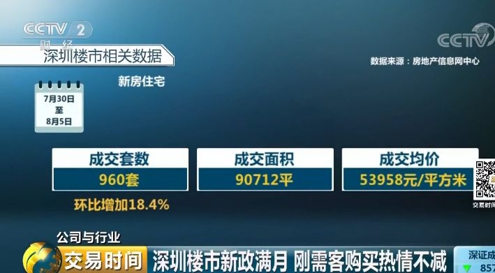 目前距离731新政刚过去一个月,新政后第一周的数据较为突出,根据深圳房地产信息网的监测数据,7月30号至8月5号,全市新房住宅成交960套,环比增加了18.4%,成交面积90712平,成交均价53958元/平方米。
