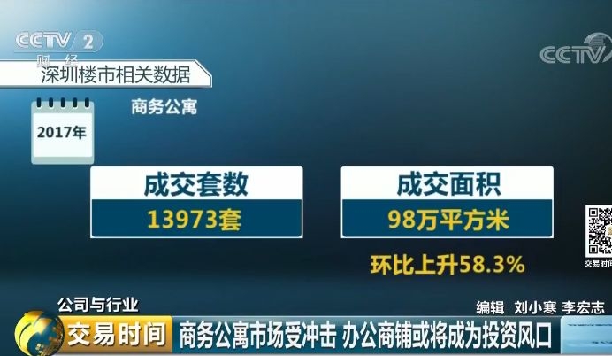深圳规土委的数据显示,2017年深圳商务公寓成交13973套,成交面积98万平方米,环比上升58.3%。